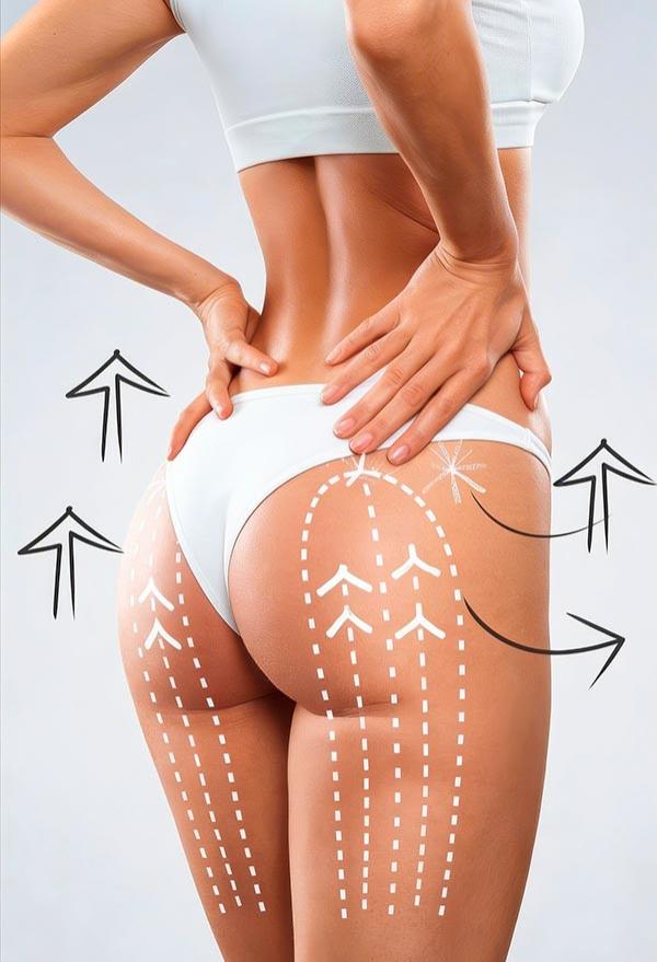 Glúteos (Bumbum de Alta Performance): É um dos tratamentos mais procurados para a região. Além de melhorar a projeção e a firmeza, é o tratamento padrão-ouro para reduzir a aparência da celulite, pois espessa a pele e "disfarça" os furinhos.